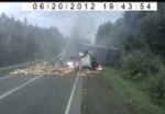 Водитель еще до аварии заметил неисправность и по радио призывал всех очистить дорогу, а также требовал ни в коем случае не дать легковым машинам встать на пути у грузовика. На ехавший по встречной полосе Kia Jessа, чей водитель не мог слышать радиопереговоры и не подозревал об опасности, решил обогнать колонну тяжеловозов.